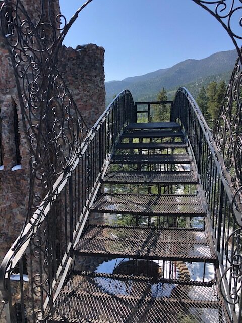 Bishop Castle is a large, elaborate, and intricate stone and iron medieval castle built over 50 years by one man, Jim Bishop. Located at 12705 CO-165, Rye, CO 81069, the free-to-enter attraction is a unique roadside that features soaring towers, ornate ironwork, a fire breathing dragon made of stainless-steel hospital trays.