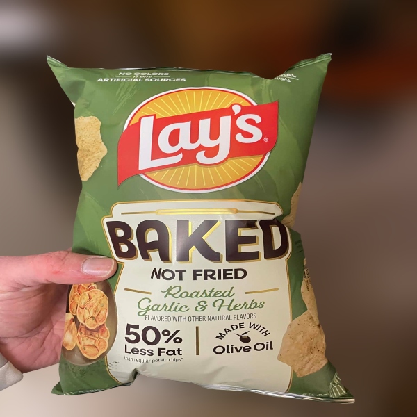 The Lay’s Baked Roasted Garlic & Herbs, feature oven-baked (not fried) potato crisps seasoned with a savory blend of roasted garlic and herbs. Made with olive oil, these chips offer 50% less fat than regular potato chips, are gluten-free, and contain no artificial flavors or colors.